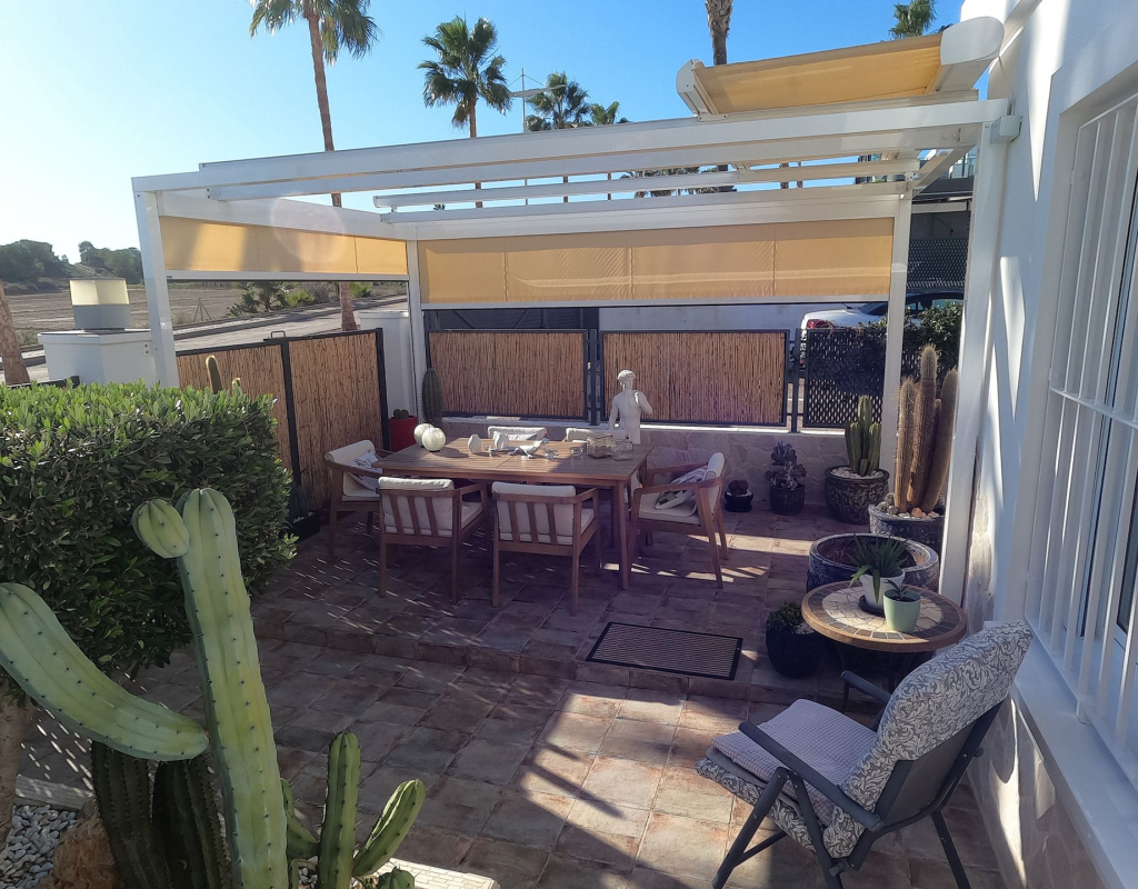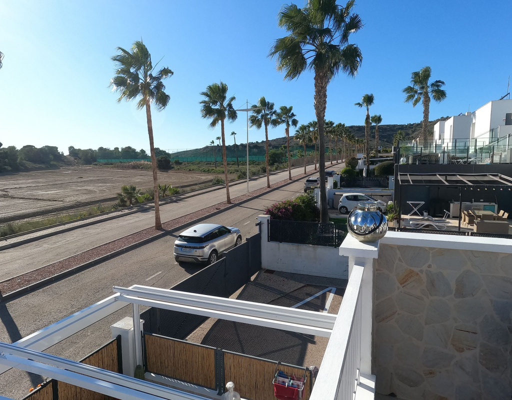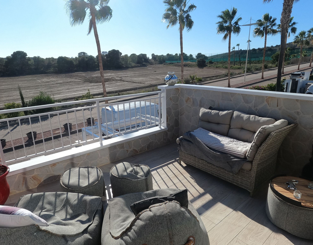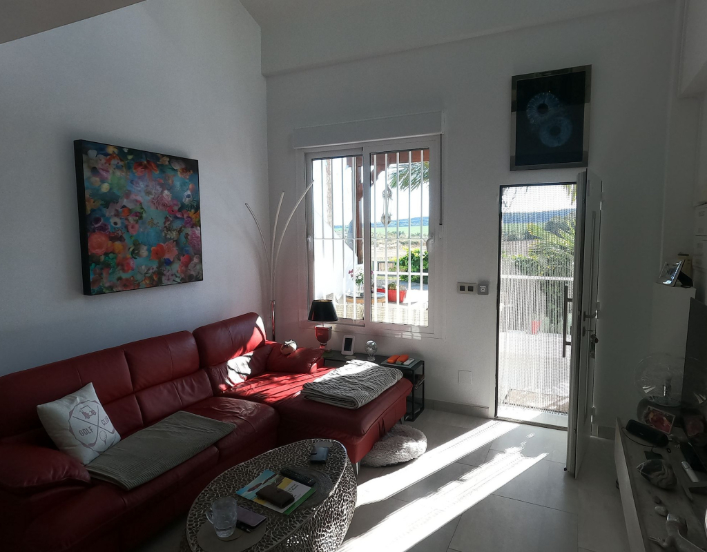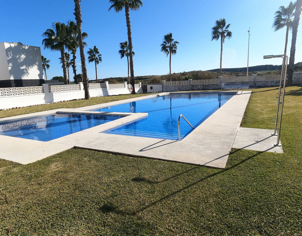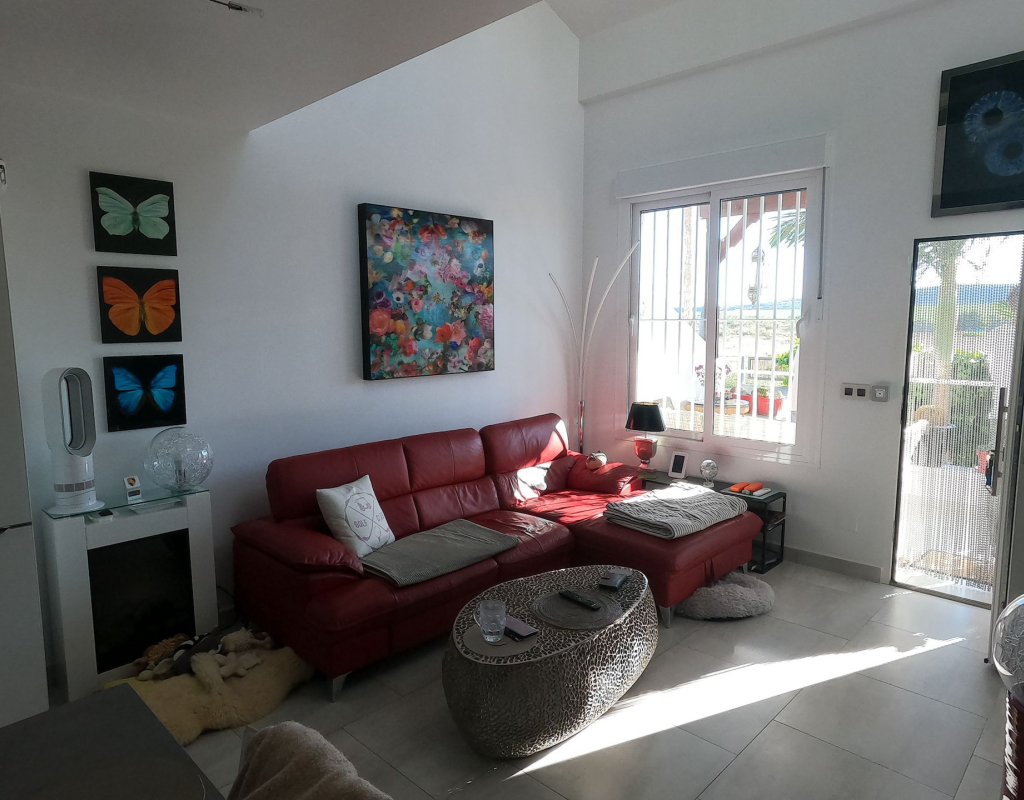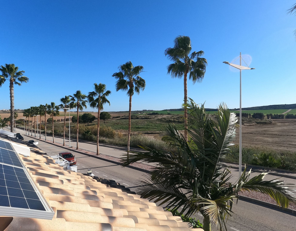 For sale: a charming resale villa located in the popular area of Algorfa, within the sought-after La Finca Golf community. This home offers an internal space of 90 m², thoughtfully laid out to provide comfortable living for families or those looking for a peaceful retreat. The villa features three spacious bedrooms and two modern bathrooms. Enjoy a bright, south-facing living area that fills the rooms with natural light, creating a welcoming atmosphere throughout the day. The home is partly furnished, allowing you to move in with ease and add your personal touch. 2 of the bedrooms and a bathroom are located on the ground floor, and the master bedroom and shower room are on the upper level. Step outside to take in stunning country views, or enjoy a relaxing afternoon at the large communal swimming pool just steps away. Golf enthusiasts will appreciate the beautifully maintained golf course right at their doorstep, as well as the vibrant and relaxing lifestyle the area offers. La Finca Golf is known for its tranquil surroundings, lush landscapes, and easy access to a range of local amenities, including shops, restaurants, and services, all just a short distance from the villa. This property is proudly advertised and we highly recommend a viewing. KEY FEATURES : AIR CONDITIONING IN ALL ROOMS NEW MODERN KITCHEN AND BATHROOMS 7 SOLAR PANELS SUN ROOM ON THE SOLARIUM NEW WINDOWS BBQ ELEVATED TERRACE SOUTH FACING 2 COMMUNAL POOLS Commun fees 344 per year Suma 250 per year
