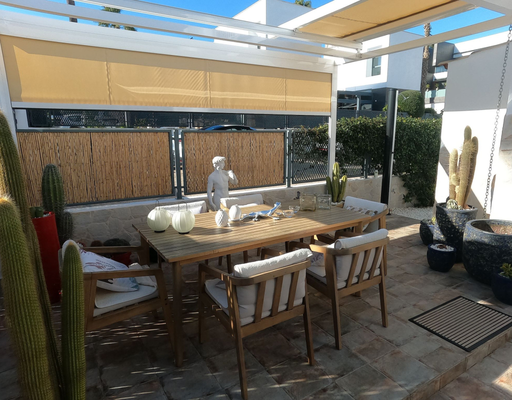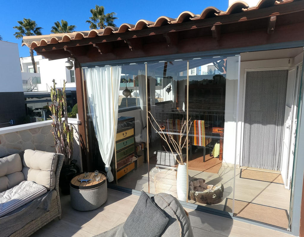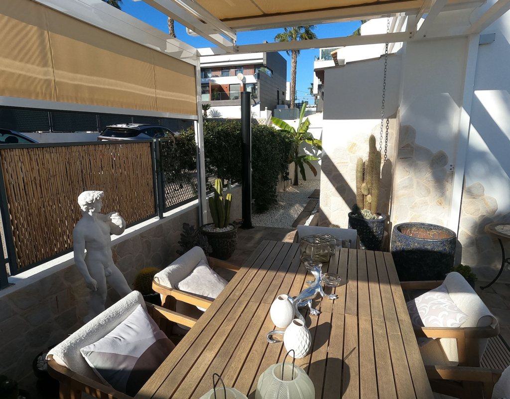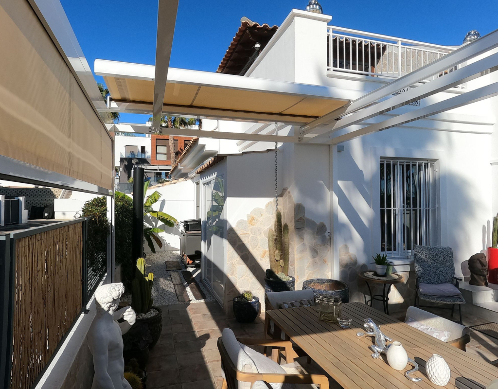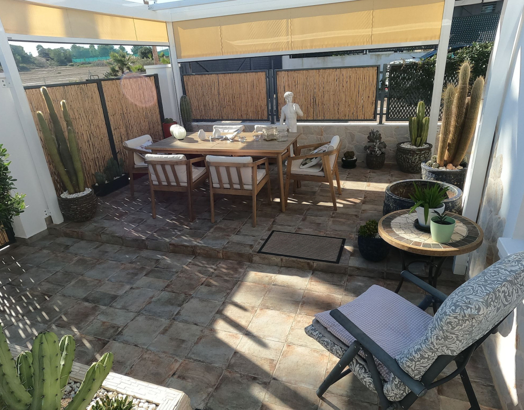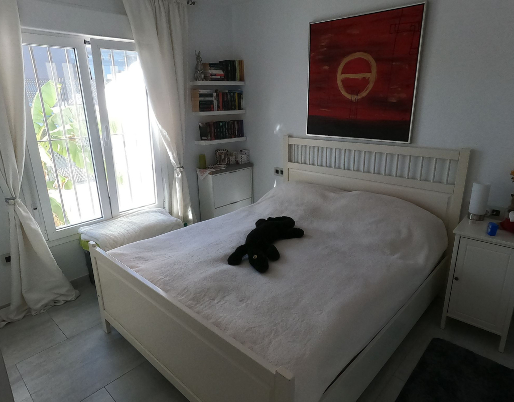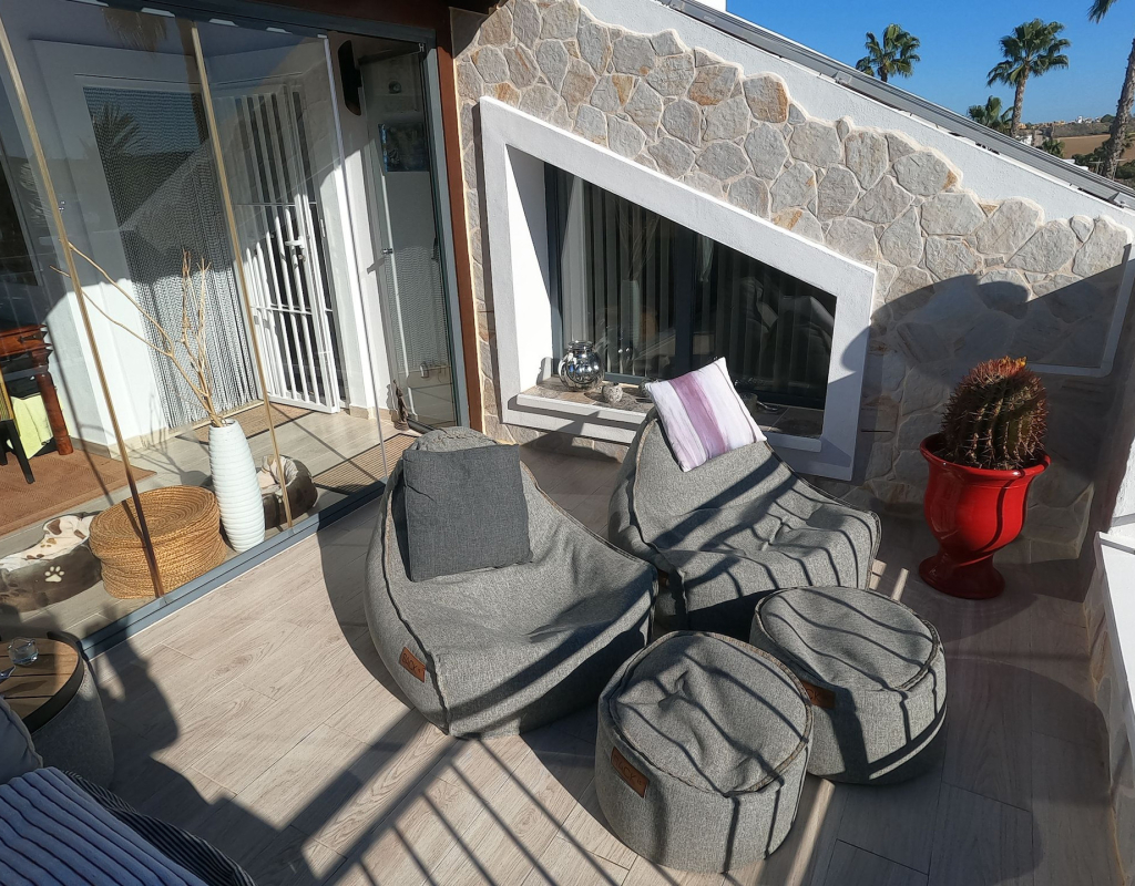 For sale: a charming resale villa located in the popular area of Algorfa, within the sought-after La Finca Golf community. This home offers an internal space of 90 m², thoughtfully laid out to provide comfortable living for families or those looking for a peaceful retreat. The villa features three spacious bedrooms and two modern bathrooms. Enjoy a bright, south-facing living area that fills the rooms with natural light, creating a welcoming atmosphere throughout the day. The home is partly furnished, allowing you to move in with ease and add your personal touch. 2 of the bedrooms and a bathroom are located on the ground floor, and the master bedroom and shower room are on the upper level. Step outside to take in stunning country views, or enjoy a relaxing afternoon at the large communal swimming pool just steps away. Golf enthusiasts will appreciate the beautifully maintained golf course right at their doorstep, as well as the vibrant and relaxing lifestyle the area offers. La Finca Golf is known for its tranquil surroundings, lush landscapes, and easy access to a range of local amenities, including shops, restaurants, and services, all just a short distance from the villa. This property is proudly advertised and we highly recommend a viewing. KEY FEATURES : AIR CONDITIONING IN ALL ROOMS NEW MODERN KITCHEN AND BATHROOMS 7 SOLAR PANELS SUN ROOM ON THE SOLARIUM NEW WINDOWS BBQ ELEVATED TERRACE SOUTH FACING 2 COMMUNAL POOLS Commun fees 344 per year Suma 250 per year
