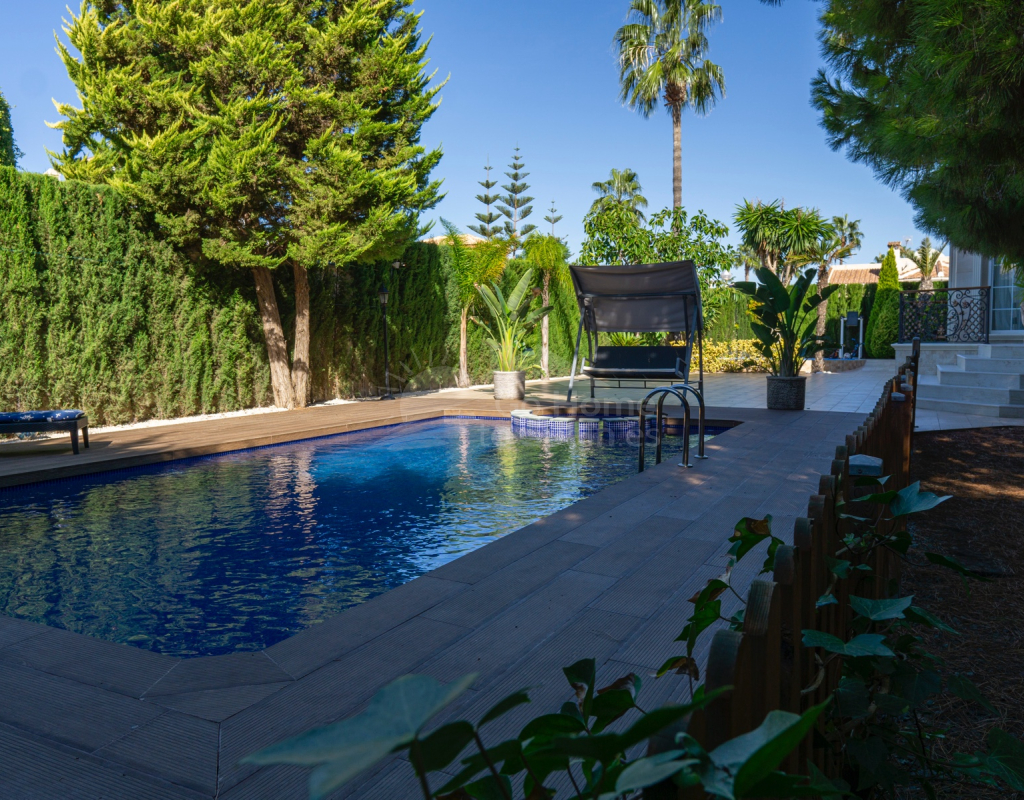 This stunning luxury villa is located in the exclusive Doña Pepa neighborhood in Ciudad Quesada, offering the perfect combination of space, comfort, and elegance. Built in 2017, this exceptional property spans 313 m² of living space on an 882 m² plot, providing ample room for both family living and entertaining. Property Features: 5 Bedrooms: Spacious and bright, offering built-in wardrobes for ample storage space. 3 Bathrooms: Stylish and modern, featuring sleek finishes and designed for comfort. Private Pool: Perfect for enjoying sunny days, offering a refreshing retreat in your own backyard. Parking: 2 parking spaces and a garage. Independent Kitchen: Fully equipped and designed for modern living. Underfloor Heating: Provides warmth throughout the villa, ensuring comfort in the cooler months. Air Conditioning: For year-round comfort. Toilets: 1 additional toilet for convenience. Additional Features: Energy Rating: In process. Plot Size: 882 m². Built Area: 313 m². Year of Construction: 2017. IBI: 474,83€ per year. No Community Fees: Offering privacy and independence. Location: Distance to Beach: 7 km. Distance to Airport: 38 km. Distance to Amenities: 1 km. Distance to Golf: 3 km. This villa's contemporary design and luxurious finishes provide a refined living experience. The large, open living areas are perfect for entertaining guests or relaxing with family, while the outdoor space offers a tranquil environment with a private pool surrounded by lush landscaping. Don't miss out on this rare opportunity to own a piece of luxury in the prestigious Doña Pepa neighborhood! Contact us today to schedule your visit and experience this exceptional property firsthand!