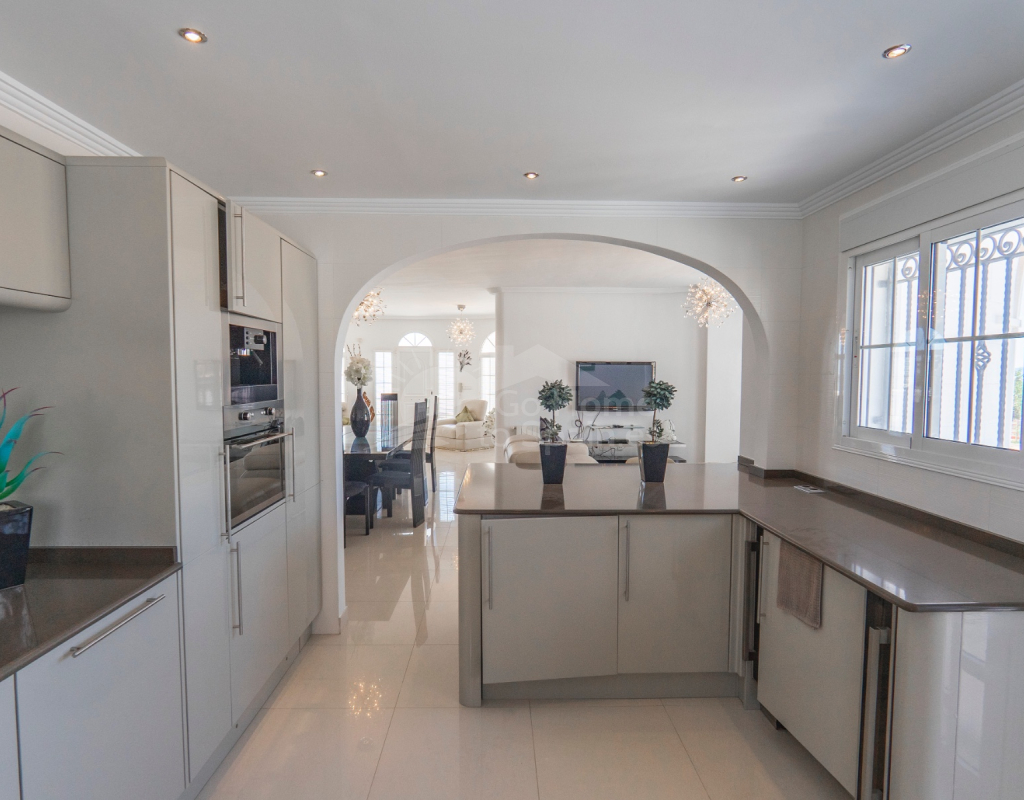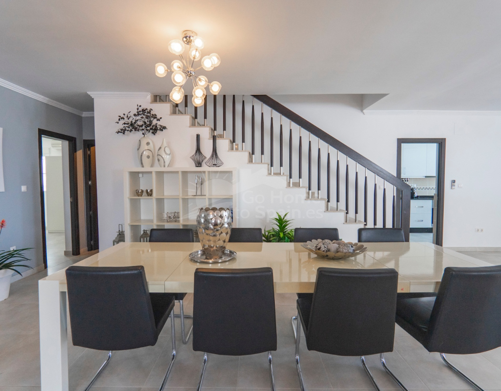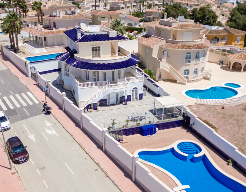 Exclusively offered by Petra Hönig, this extraordinary detached villa is situated in the prestigious La Fiesta neighborhood of Ciudad Quesada, boasting uninterrupted views over the salt lakes and offering a rare blend of luxury, space, and privacy. Set on a generous 782 m² plot with a substantial 490 m² build, this impressive residence is thoughtfully distributed across multiple levels and features six spacious bedrooms and five bathrooms. Ideal for large families, guests, or luxury rental opportunities, the layout offers maximum flexibility. The villa includes expansive living and dining areas, a private swimming pool, beautifully landscaped gardens, private parking for several vehicles, and multiple sun terraces to enjoy the Mediterranean climate and panoramic views. Perfectly located near La Marquesa Golf, local shops, restaurants, and just a short drive from the sandy beaches of Guardamar del Segura, this is an exceptional opportunity to own a truly remarkable home on the Costa Blanca. Key Features: 6 bedrooms | 5 bathrooms 490 m² built | 782 m² plot Breathtaking salt lake views Private pool and sun terraces Large garage and ample private parking High-quality finishes and design Ideal for full-time living, holiday home, or investment Close to golf, beaches, and all amenities Contact Petra Hönig today to schedule your private viewing of this exclusive villa.