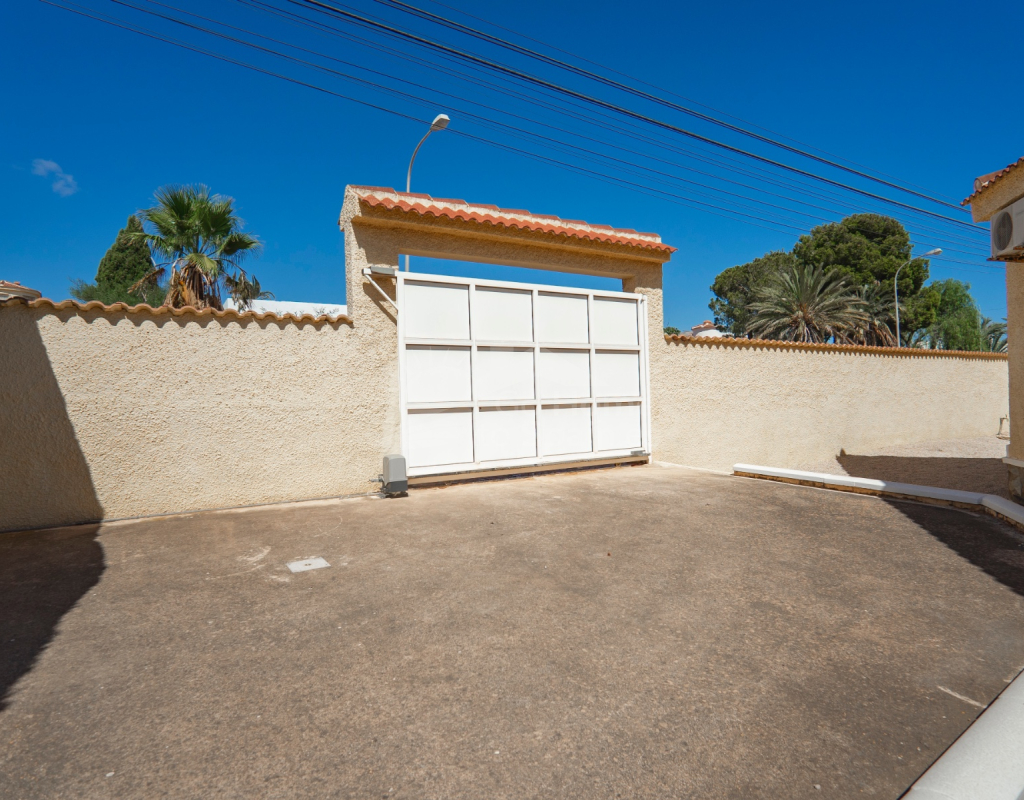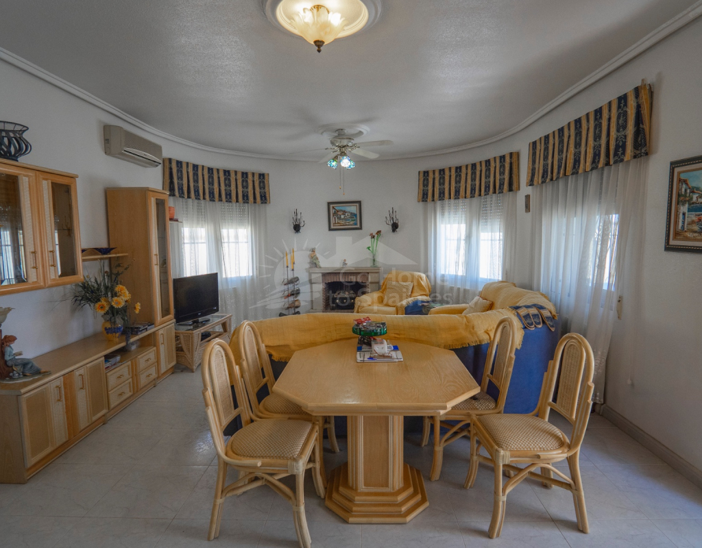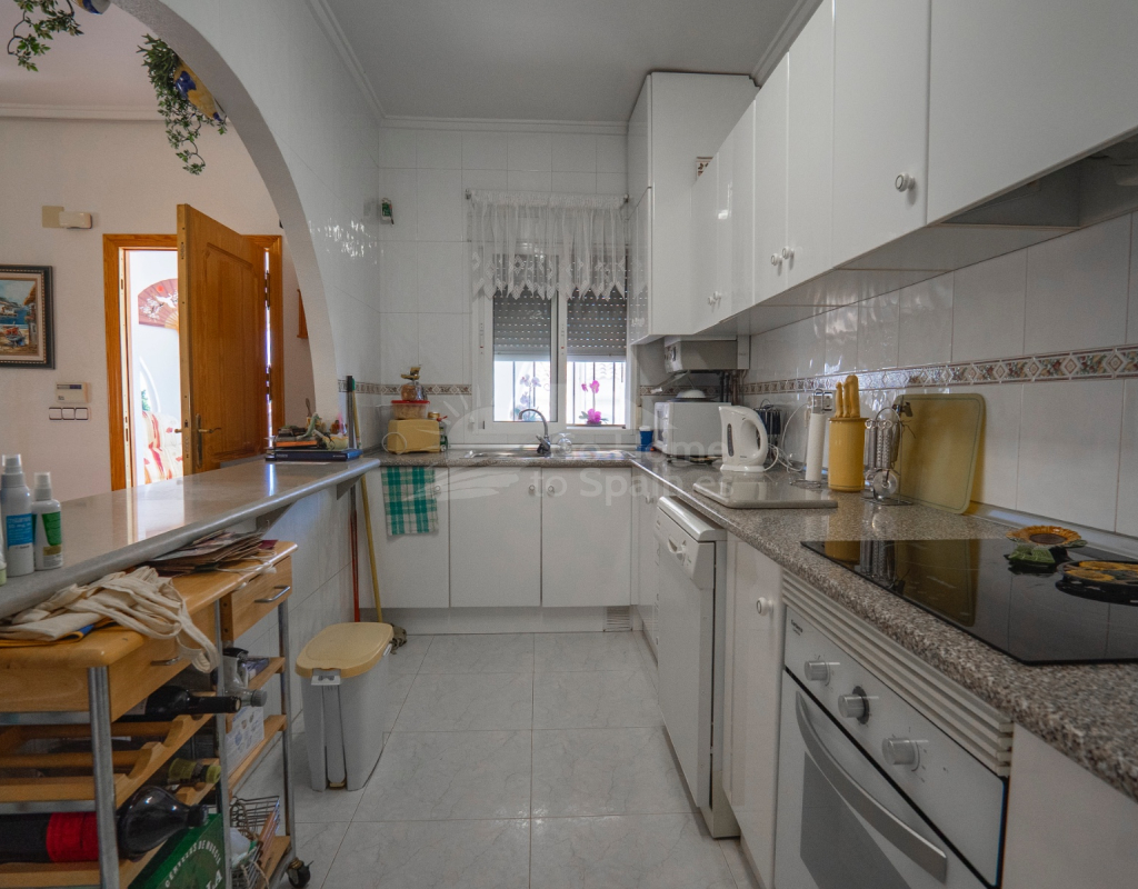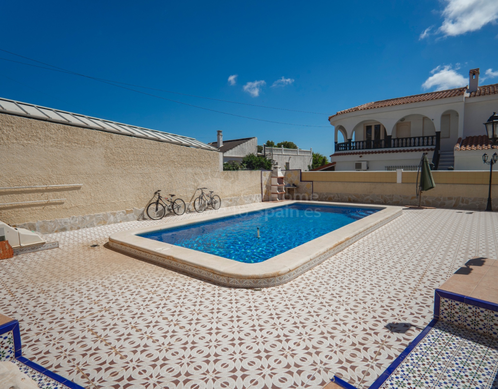 This beautifully presented Spanish-style detached villa is ideally located in the town center of Ciudad Quesada, offering both convenience and comfort in one of the area's most sought-after locations. Set on one level, the property features 3 spacious bedrooms and 2 bathrooms, including a master ensuite. The bright and airy living space includes a cozy fireplace, perfect for cooler evenings, and air-conditioning in all rooms—recently serviced—for year-round comfort. A glazed balcony provides an ideal spot to relax and enjoy a partial lake view, while the private pool at the front of the house invites you to soak up the Spanish sun in complete privacy. There's also secure parking within the property, adding to the villa’s convenience. Additional features include central gas and the charm of traditional Spanish architecture throughout. Whether you're looking for a full-time residence, holiday home, or investment property, this villa ticks all the boxes. Just steps from shops, restaurants, and all amenities that Ciudad Quesada has to offer.