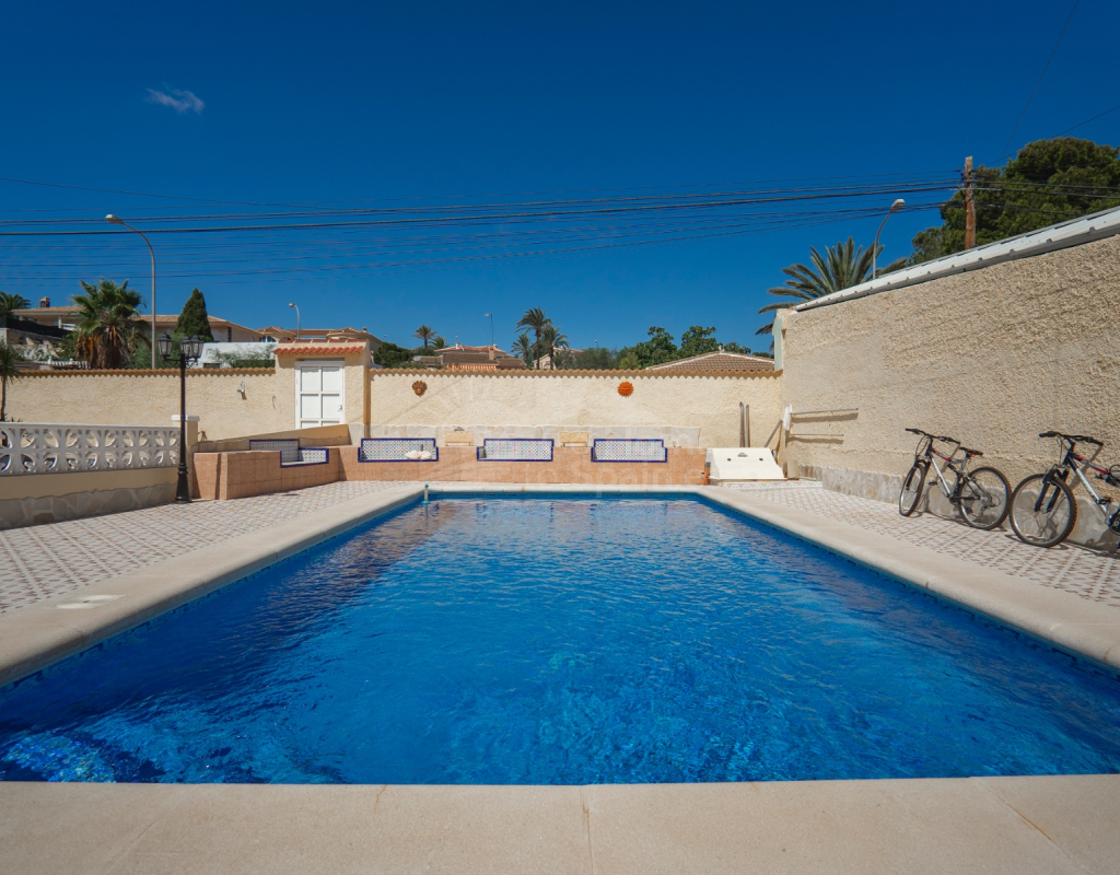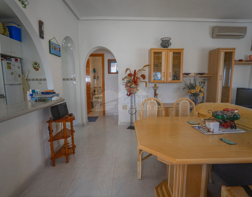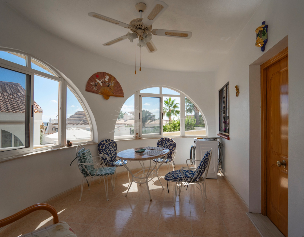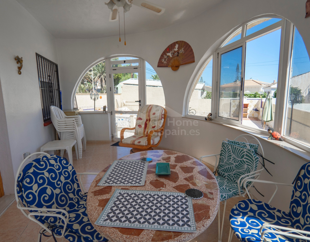 This beautifully presented Spanish-style detached villa is ideally located in the town center of Ciudad Quesada, offering both convenience and comfort in one of the area's most sought-after locations. Set on one level, the property features 3 spacious bedrooms and 2 bathrooms, including a master ensuite. The bright and airy living space includes a cozy fireplace, perfect for cooler evenings, and air-conditioning in all rooms—recently serviced—for year-round comfort. A glazed balcony provides an ideal spot to relax and enjoy a partial lake view, while the private pool at the front of the house invites you to soak up the Spanish sun in complete privacy. There's also secure parking within the property, adding to the villa’s convenience. Additional features include central gas and the charm of traditional Spanish architecture throughout. Whether you're looking for a full-time residence, holiday home, or investment property, this villa ticks all the boxes. Just steps from shops, restaurants, and all amenities that Ciudad Quesada has to offer.