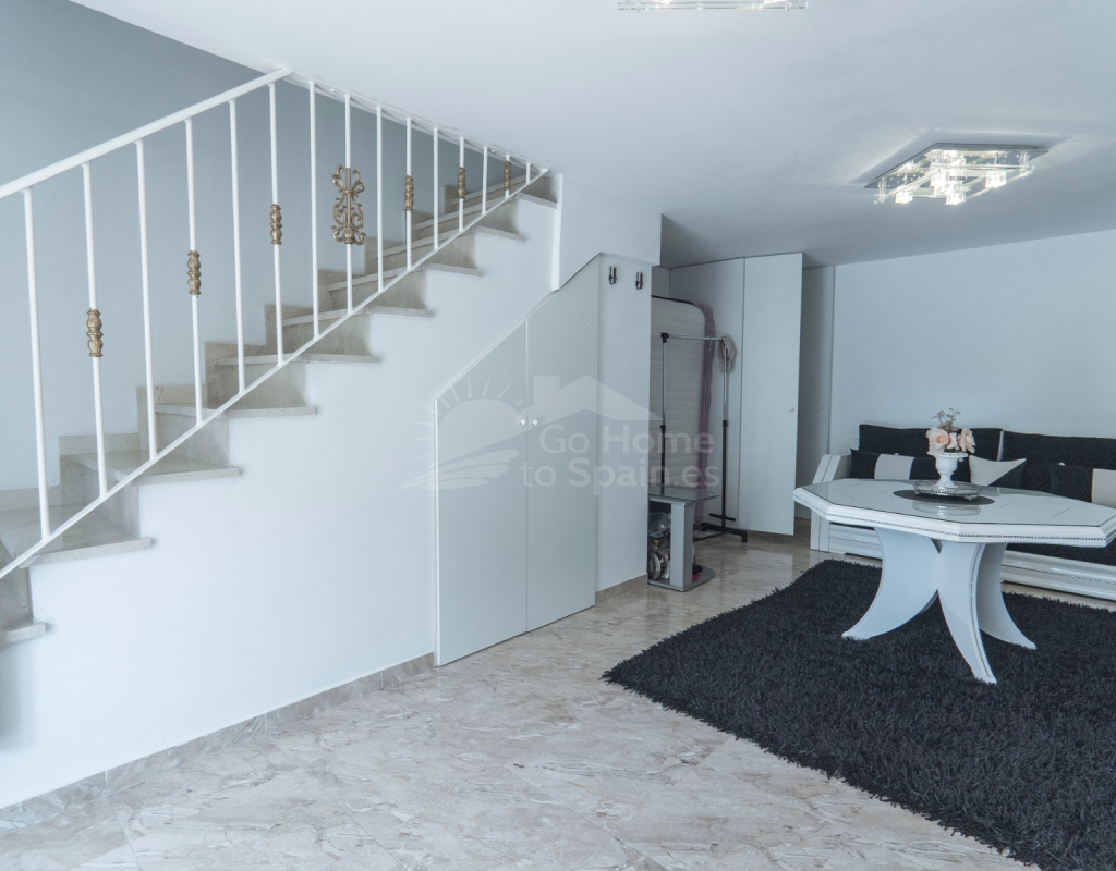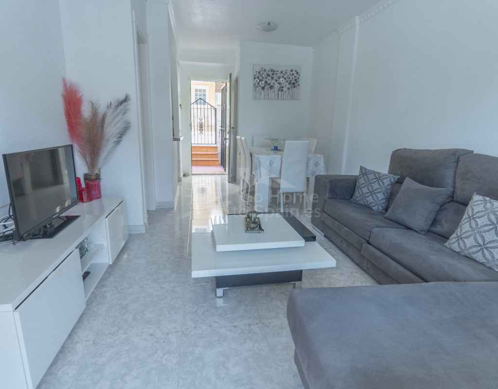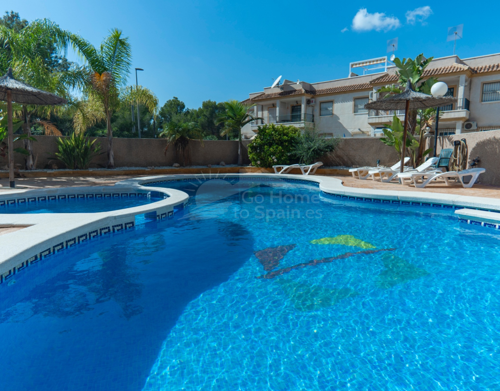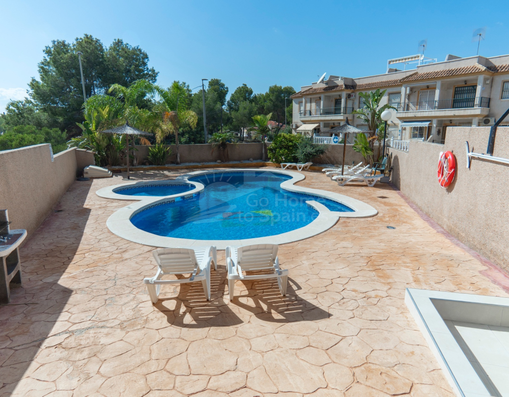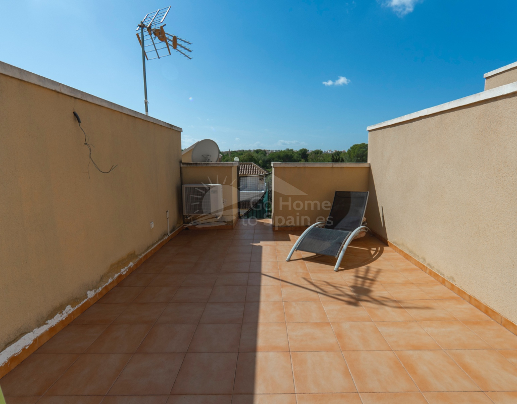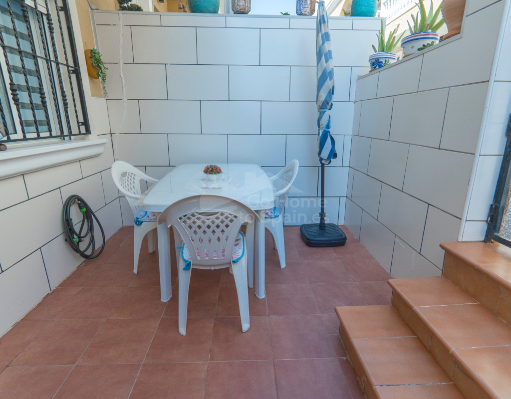 Situated in the peaceful and well-connected community of Montemar, Algorfa, this charming 3-storey, 2 bedroom townhouse offers a spacious and flexible layout, ideal for full-time living, holidays, or investment. Access to the property is through a private front garden, which leads into a separate ground-floor living area—perfect for use as a guest suite, office, hobby room, or second lounge. From here, an internal staircase provides direct access to the main living area on the first floor, creating a seamless flow throughout the home. The first floor features a bright open-plan kitchen and living room, a guest toilet, and direct access to the rear patio, ideal for entertaining or relaxing. There’s also a built-in BBQ area, making outdoor dining a joy. The top floor hosts two double bedrooms and a family bathroom, along with access to a private solarium, perfect for sunbathing or enjoying open views of the surrounding area. Key Features: 2 bedrooms / 1.5 bathroomsSeparate ground-floor living area with private accessInternal staircase connecting all floorsFront and rear patiosTerrace and private solariumBuilt-in BBQAccess to a communal swimming poolLocated in a quiet, residential area close to amenities and golf This versatile townhouse offers great value and plenty of potential—whether you're looking for a relaxed lifestyle in the sun or a smart rental opportunity.