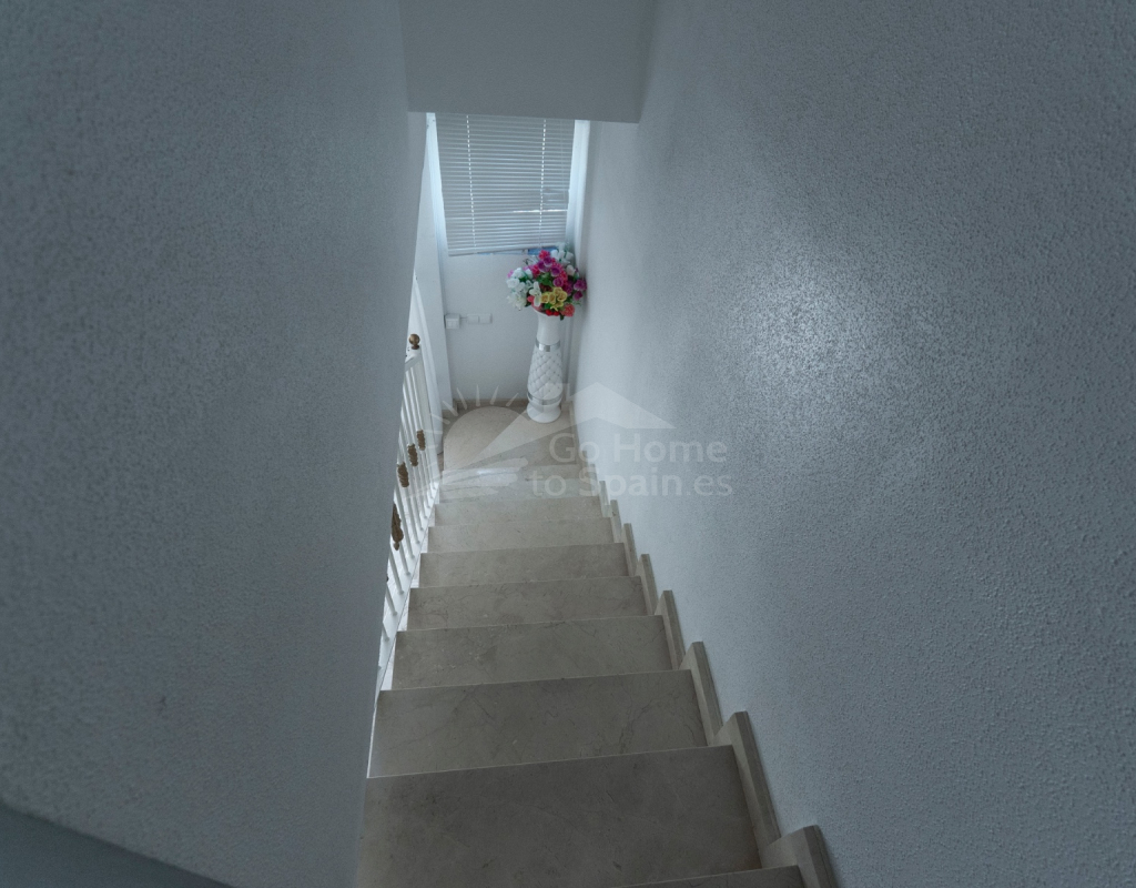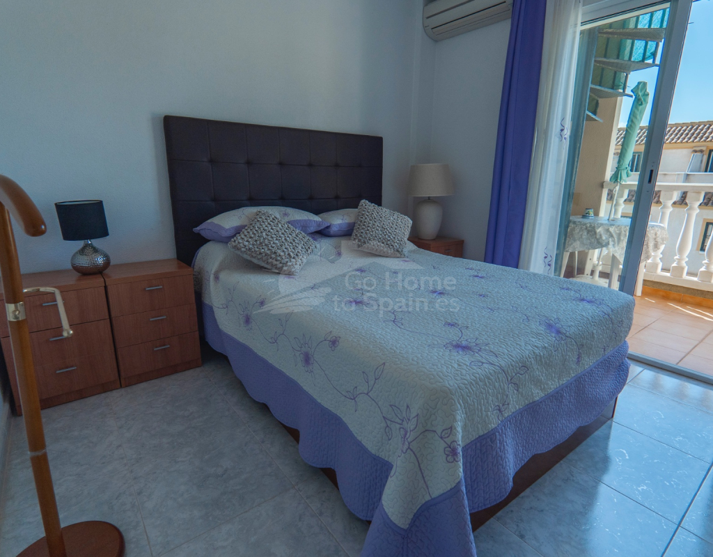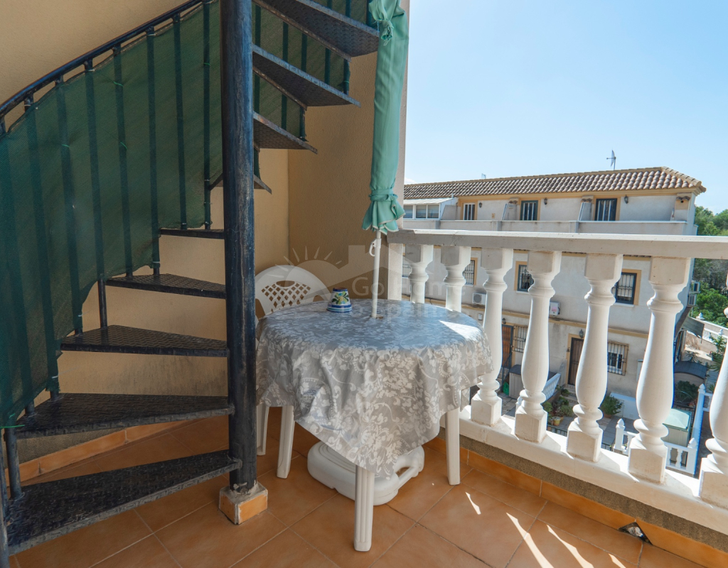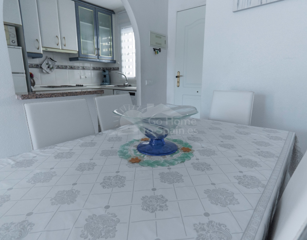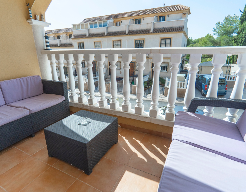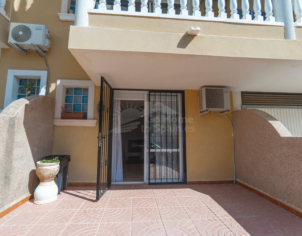 Situated in the peaceful and well-connected community of Montemar, Algorfa, this charming 3-storey, 2 bedroom townhouse offers a spacious and flexible layout, ideal for full-time living, holidays, or investment. Access to the property is through a private front garden, which leads into a separate ground-floor living area—perfect for use as a guest suite, office, hobby room, or second lounge. From here, an internal staircase provides direct access to the main living area on the first floor, creating a seamless flow throughout the home. The first floor features a bright open-plan kitchen and living room, a guest toilet, and direct access to the rear patio, ideal for entertaining or relaxing. There’s also a built-in BBQ area, making outdoor dining a joy. The top floor hosts two double bedrooms and a family bathroom, along with access to a private solarium, perfect for sunbathing or enjoying open views of the surrounding area. Key Features: 2 bedrooms / 1.5 bathroomsSeparate ground-floor living area with private accessInternal staircase connecting all floorsFront and rear patiosTerrace and private solariumBuilt-in BBQAccess to a communal swimming poolLocated in a quiet, residential area close to amenities and golf This versatile townhouse offers great value and plenty of potential—whether you're looking for a relaxed lifestyle in the sun or a smart rental opportunity.