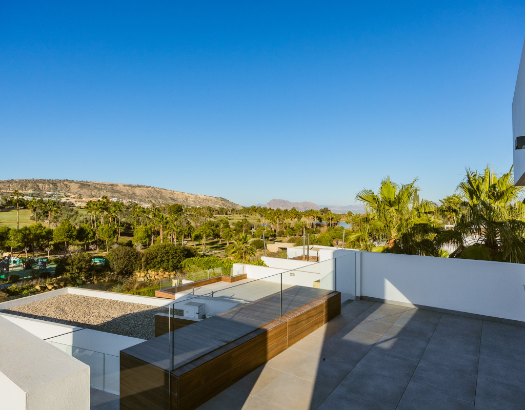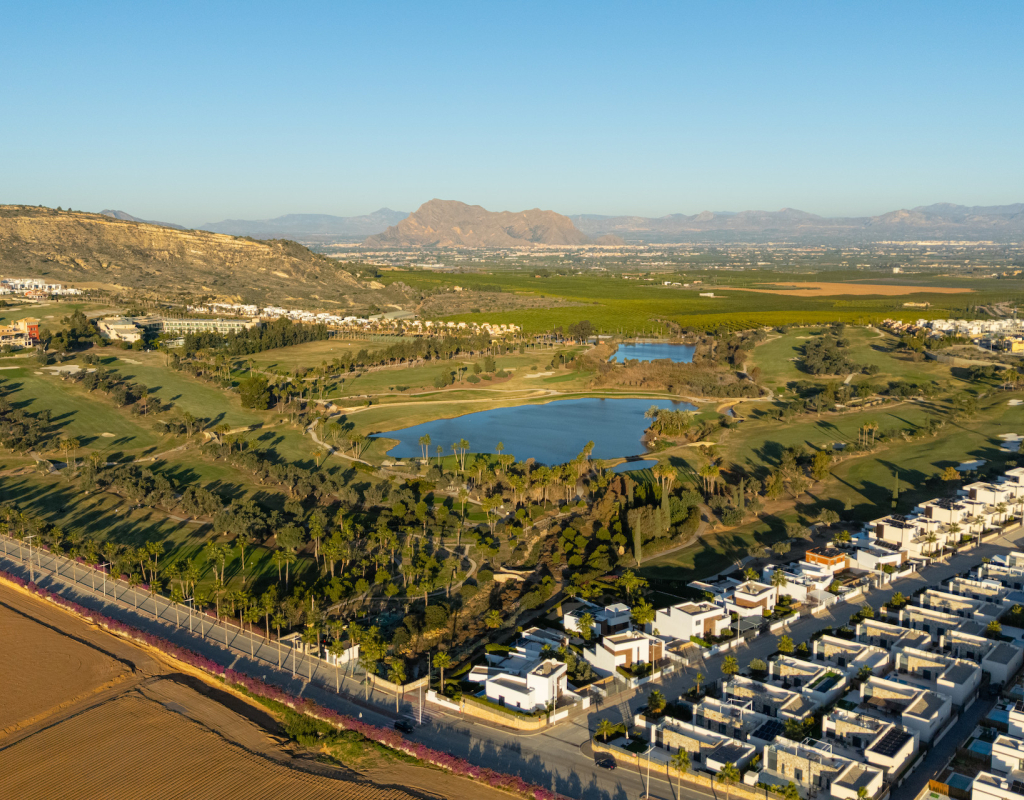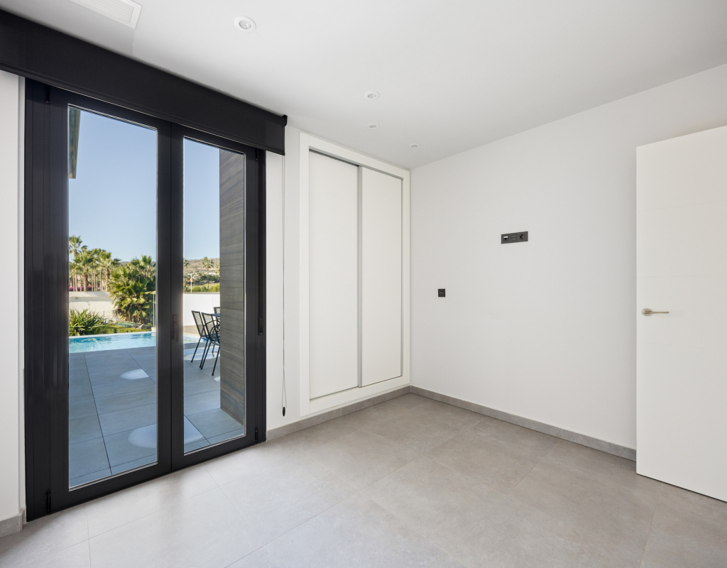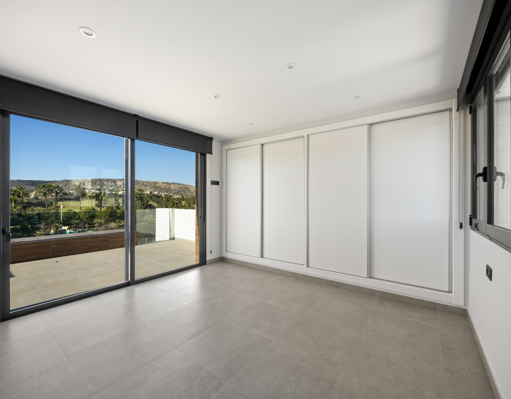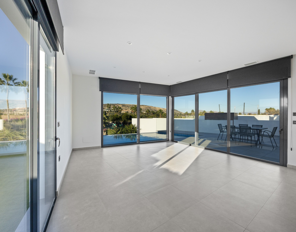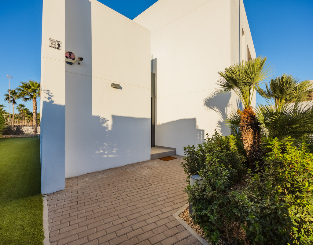Stunning front line golf luxury modern villa at La Finca Golf with open golf course and mountain views. Set on a prime south-facing plot, this contemporary home offers privacy, light and exceptional indoor-outdoor living in one of the resort’s most sought-after locations. Stunning South-Facing Villa in prominent position to La Finca Golf with Exceptional Privacy, Infinity Pool & a 120m² Designer Underbuild. Positioned on one of the most privileged front line plots in all of La Finca Golf, this modern 4-bedroom villa combines architectural elegance, panoramic golf and mountain views, complete privacy, and a unique 120m² daylight-filled under build with spectacular pool windows — a feature rarely found anywhere in Spain. Just 30 minutes from Alicante Airport, this is the ideal base for year-round living, long golf weekends, or a premium holiday home. Property Overview 4 bedrooms 3 bathrooms + 1 guest WC 300 m² built area (including 120 m² under build) 440 m² private plot South-facing Front line golf position with uninterrupted views Infinity private pool with pool-window feature Large terraces + 65 m² solarium Parking area and dual access (front & back entrances) No community fees A Home Designed Around Light, Views and Privacy The villa enjoys one of the most private positions on La Finca — a rarity on the resort. No neighbouring properties overlook the pool, terraces or solarium, allowing for complete sunbathing privacy, even au naturel if desired. The elevated plot and open vistas provide a serene, exclusive atmosphere from sunrise to sunset. Main Living Area The ground floor is a bright, open-plan space framed by floor-to-ceiling glass, bringing views and sunlight into every corner. Spacious living room with panoramic views High ceilings for an airy architectural feel Direct access to the pool and terraces Seamless indoor–outdoor flow The Siemens-equipped kitchen includes: Siemens refrigerator Siemens dishwasher Dual Siemens ovens AEG induction hob with integrated extractor Abundant worktop and storage space Breakfast bar island Bedrooms and Bathrooms The villa offers four well-appointed bedrooms, each with large fitted wardrobes and beautiful natural light. Main level Three bedrooms, one with en-suite with bathtub Direct terrace and pool access from two bedrooms Additional family shower room Upper level Master suite with private bathroom Sliding doors to a spectacular wrap-around solarium Far-reaching views over the golf course and surrounding mountains 120 m² Underbuild — A Rare, Versatile Living Space This remarkable level is unlike anything else on La Finca: Flooded with natural light Show-stopping glass windows looking directly into the pool Guest WC + full laundry area (Siemens washing machine & Siemens dryer) This space can be transformed into: Cinema room Gym Games & bar lounge Additional living quarters Office + studio Wellness spa area The cool summer temperatures make it ideal for year-round use. Outdoor Living Infinity pool with underwater windows Large sun terraces with unbeatable views Beautiful low-maintenance landscaping South orientation for maximum sun exposure Elevated plot ensuring privacy 65 m² rooftop solarium for sunsets, yoga, dining, or a jacuzzi Additional Features Mitsubishi Electric air conditioning (efficient heating & cooling) Motion-detection alarm system High-speed fiber optic internet Electric shutters Front and rear access ideal for guests or deliveries Short walk to restaurants, bars, shops and services Access to La Finca’s spa, golf academy, padel and tennis club, and fitness facilities Lifestyle and Location La Finca Golf is one of Spain’s most highly regarded golf resorts, ranked among the Top 100 Golf Resorts in Europe. The villa is within minutes of: Renowned golf course with academy Tennis & padel club Luxury hotel & spa Gyms, hiking routes & mountain biking trails Excellent restaurants and entertainment Award-winning beaches (20 minutes) A rare combination of luxury, architecture, natural light, privacy, and an unbeatable front line setting. Viewing Highly Recommended Homes with this level of privacy, orientation and design are rarely available. Viewings are by appointment only.