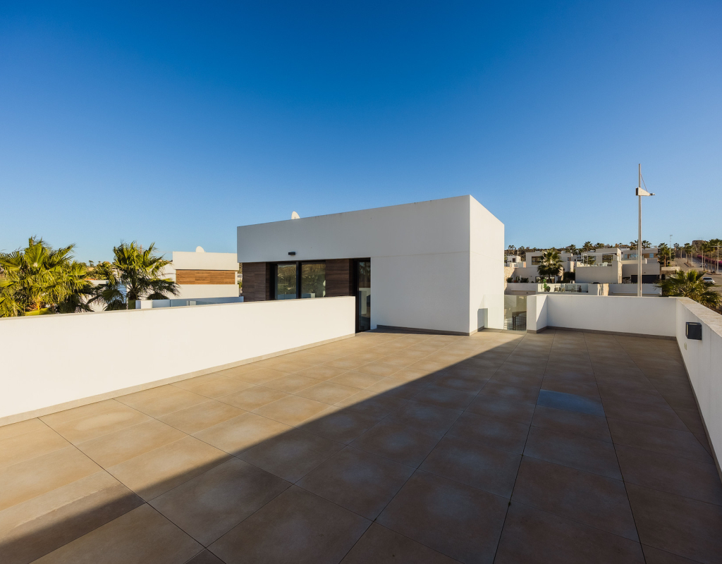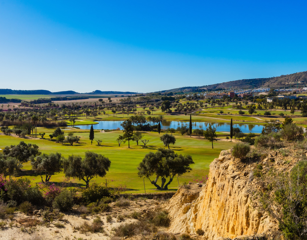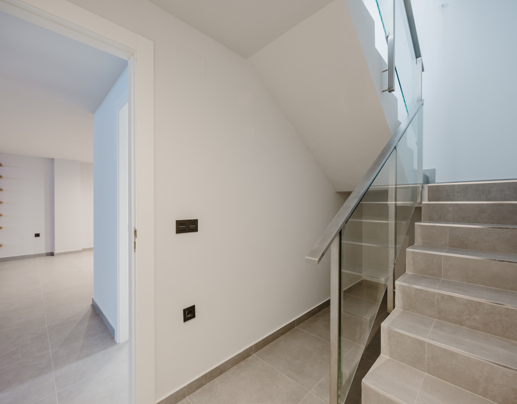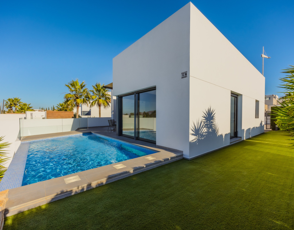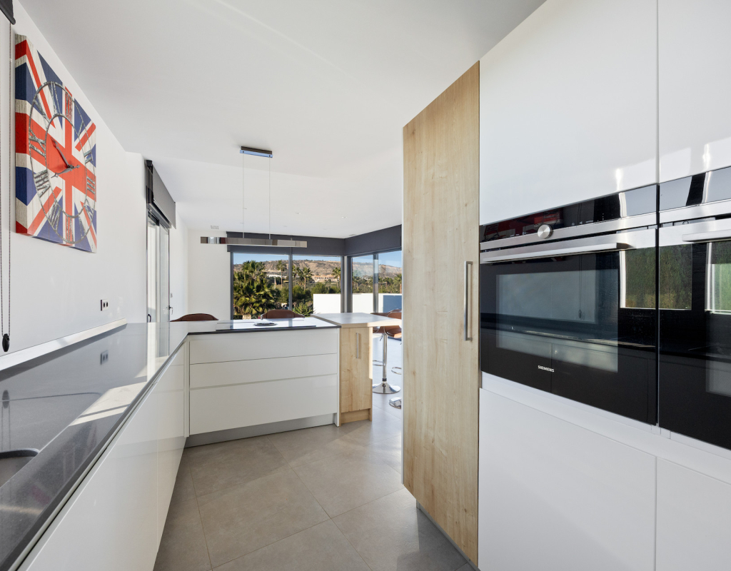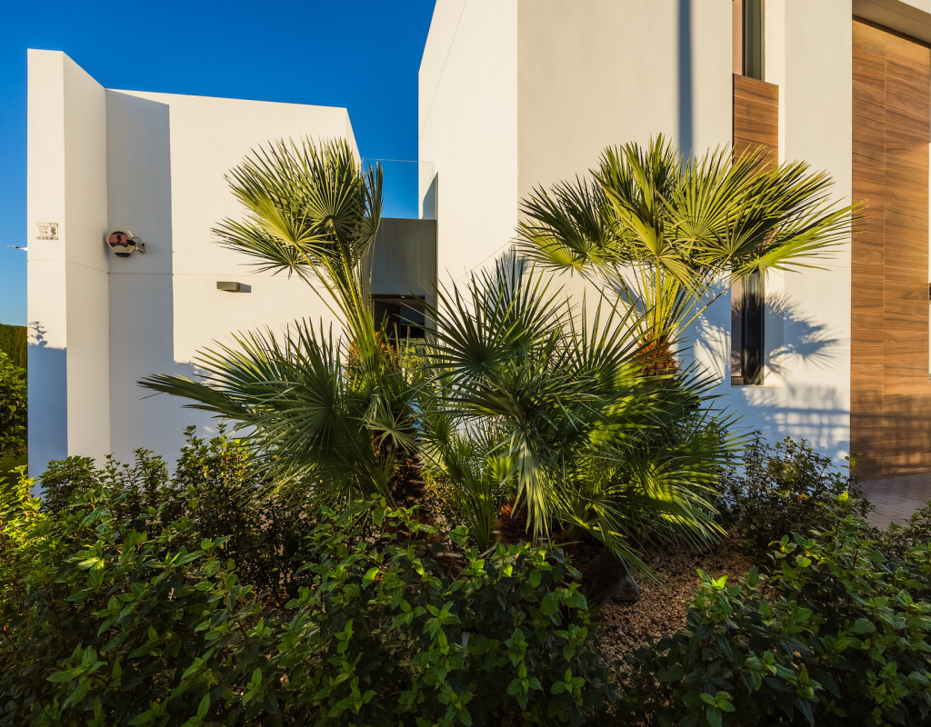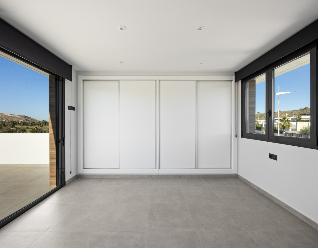 Stunning front line golf luxury modern villa at La Finca Golf with open golf course and mountain views. Set on a prime south-facing plot, this contemporary home offers privacy, light and exceptional indoor-outdoor living in one of the resort’s most sought-after locations. Stunning South-Facing Villa in prominent position to La Finca Golf with Exceptional Privacy, Infinity Pool & a 120m² Designer Underbuild. Positioned on one of the most privileged front line plots in all of La Finca Golf, this modern 4-bedroom villa combines architectural elegance, panoramic golf and mountain views, complete privacy, and a unique 120m² daylight-filled under build with spectacular pool windows — a feature rarely found anywhere in Spain. Just 30 minutes from Alicante Airport, this is the ideal base for year-round living, long golf weekends, or a premium holiday home. Property Overview 4 bedrooms 3 bathrooms + 1 guest WC 300 m² built area (including 120 m² under build) 440 m² private plot South-facing Front line golf position with uninterrupted views Infinity private pool with pool-window feature Large terraces + 65 m² solarium Parking area and dual access (front & back entrances) No community fees A Home Designed Around Light, Views and Privacy The villa enjoys one of the most private positions on La Finca — a rarity on the resort. No neighbouring properties overlook the pool, terraces or solarium, allowing for complete sunbathing privacy, even au naturel if desired. The elevated plot and open vistas provide a serene, exclusive atmosphere from sunrise to sunset. Main Living Area The ground floor is a bright, open-plan space framed by floor-to-ceiling glass, bringing views and sunlight into every corner. Spacious living room with panoramic views High ceilings for an airy architectural feel Direct access to the pool and terraces Seamless indoor–outdoor flow The Siemens-equipped kitchen includes: Siemens refrigerator Siemens dishwasher Dual Siemens ovens AEG induction hob with integrated extractor Abundant worktop and storage space Breakfast bar island Bedrooms and Bathrooms The villa offers four well-appointed bedrooms, each with large fitted wardrobes and beautiful natural light. Main level Three bedrooms, one with en-suite with bathtub Direct terrace and pool access from two bedrooms Additional family shower room Upper level Master suite with private bathroom Sliding doors to a spectacular wrap-around solarium Far-reaching views over the golf course and surrounding mountains 120 m² Underbuild — A Rare, Versatile Living Space This remarkable level is unlike anything else on La Finca: Flooded with natural light Show-stopping glass windows looking directly into the pool Guest WC + full laundry area (Siemens washing machine & Siemens dryer) This space can be transformed into: Cinema room Gym Games & bar lounge Additional living quarters Office + studio Wellness spa area The cool summer temperatures make it ideal for year-round use. Outdoor Living Infinity pool with underwater windows Large sun terraces with unbeatable views Beautiful low-maintenance landscaping South orientation for maximum sun exposure Elevated plot ensuring privacy 65 m² rooftop solarium for sunsets, yoga, dining, or a jacuzzi Additional Features Mitsubishi Electric air conditioning (efficient heating & cooling) Motion-detection alarm system High-speed fiber optic internet Electric shutters Front and rear access ideal for guests or deliveries Short walk to restaurants, bars, shops and services Access to La Finca’s spa, golf academy, padel and tennis club, and fitness facilities Lifestyle and Location La Finca Golf is one of Spain’s most highly regarded golf resorts, ranked among the Top 100 Golf Resorts in Europe. The villa is within minutes of: Renowned golf course with academy Tennis & padel club Luxury hotel & spa Gyms, hiking routes & mountain biking trails Excellent restaurants and entertainment Award-winning beaches (20 minutes) A rare combination of luxury, architecture, natural light, privacy, and an unbeatable front line setting. Viewing Highly Recommended Homes with this level of privacy, orientation and design are rarely available. Viewings are by appointment only.