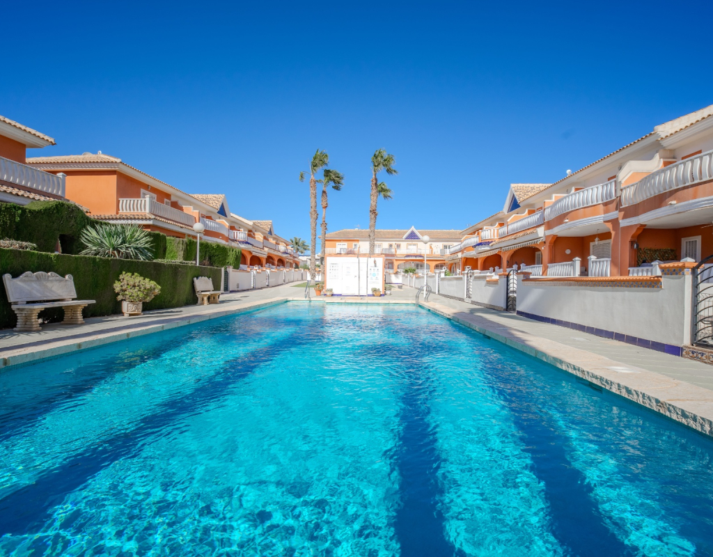 Welcome to this beautifully maintained south-facing townhouse located in a quiet and friendly gated community in the heart of Ciudad Quesada.