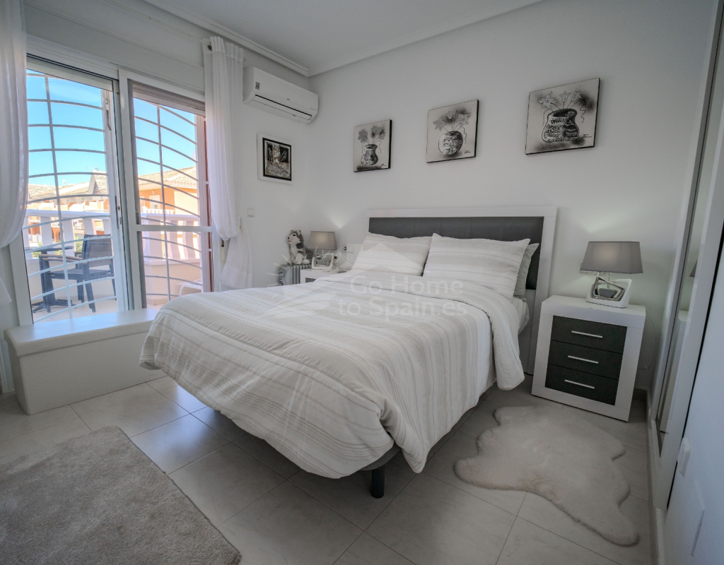 Low-maintenance tiled terraces at both front and rear of the property provide versatile outdoor areas. Whether enjoying all-day sunshine or shaded relaxation, the property is designed for easy Mediterranean living.
