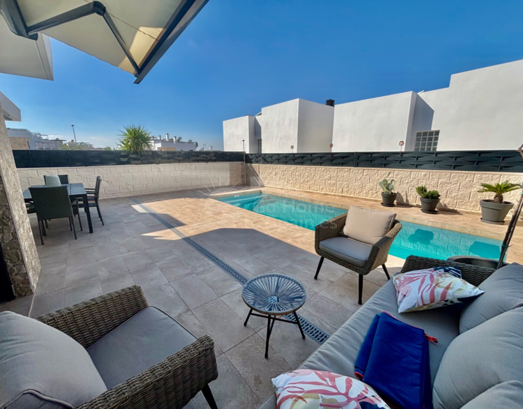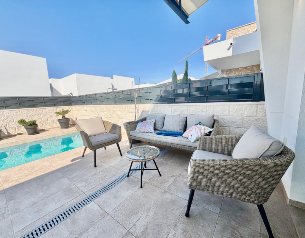 Discover this stunning modern villa in the heart of Benijófar, offering stylish design, private outdoor living, and beautiful mountain views — perfect as a permanent home, holiday retreat, or investment.
