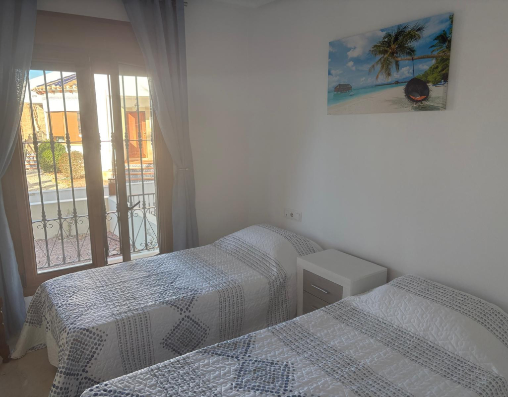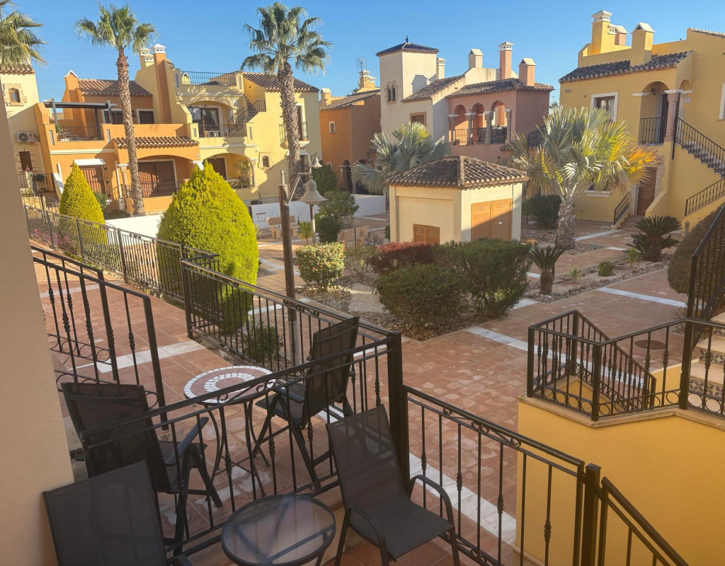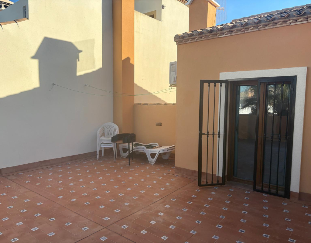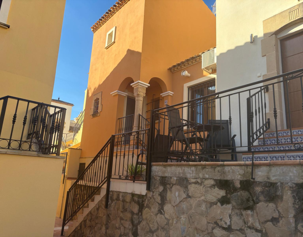 For sale is a charming resale townhouse set within the sought-after La Finca Golf, in the peaceful area of Algorfa. This property offers a versatile, and comfortable living space and is ideal for both holidays and year-round living. Inside, you will find three spacious bedrooms, two of which are located on the ground floor, a family bathroom and an en-suite shower room. The open plan lounge diner has a feature fireplace and patio doors leading to a terrace which overlooks the garden. There is a fully equipped kitchen. Stairs up to the master bedroom, which has doors out onto the solarium. There is also solarium access via a door at the to top of stairs. The townhouse is located in a secure, gated complex with beautifully maintained grounds. Residents can enjoy a lovely communal swimming pool, perfect for relaxing or socialising with neighbours. The home's south-west facing orientation ensures plenty of natural light throughout the day, creating a warm and inviting atmosphere. Algorfa, La Finca Golf is well known for its stunning golf course, tranquil environment, and close-knit community. The area boasts a range of amenities including shops, restaurants, and cafes, all just a short walk away. This property is ideally suited for golf enthusiasts and those seeking a calm lifestyle, while still being close to everything you need. Proudly presented by Orange Casas, this townhouse is ready to become your next home. Contact us today for more information or to arrange a viewing.