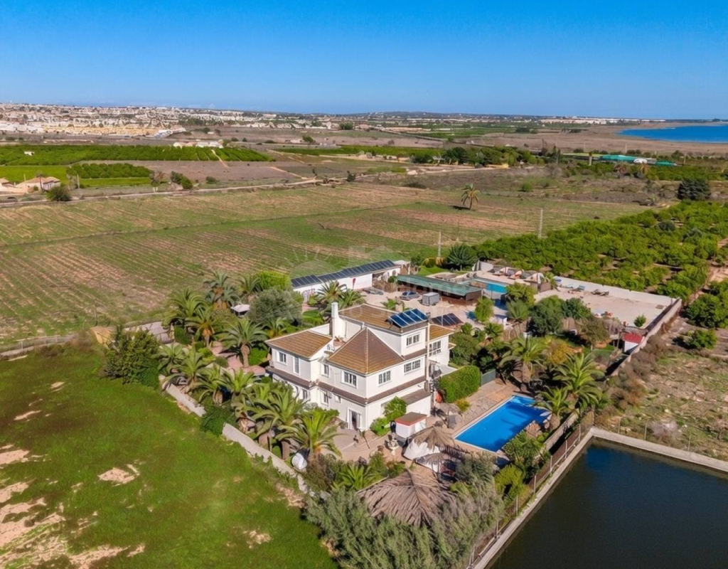 This exceptional south-facing property, originally constructed in 2001 and recently refurbished, is presented in excellent condition and offers a rare combination of space, privacy, and panoramic surroundings. Set on an impressive 11,400 m² plot with beautifully landscaped gardens, the villa enjoys stunning lake and country views in a secluded and tranquil setting. The main residence boasts 10 spacious bedrooms and 11 bathrooms, many of them en-suite, along with an additional guest toilet. With a generous built area of 583 m², the property features open-plan living and dining areas, multiple fully fitted kitchens (including a separate kitchen), and a practical utility room, making it ideal for large families, entertaining, or guest accommodation. A separate apartment adds further flexibility for visitors or rental potential. Comfort is ensured year-round with air conditioning, ceiling fans, double glazing, mosquito blinds, and a charming fireplace. The home is partly furnished and includes white goods, ample storage rooms, and a large storeroom. Externally, the property truly shines. A private swimming pool, Jacuzzi, solarium, and outdoor kitchen/BBQ areacreate the perfect environment for outdoor living. The grounds are fully enclosed with a gated entrance, electric gates, and an alarm system for added security. Additional features include solar panels, off-road parking, a garage, and space for up to 8 vehicles. Conveniently located, the property is just 15 minutes from the beach and golf courses, 10 minutes from local amenities, and 30 minutes from the airport, offering the perfect balance between countryside living and accessibility. This spacious and versatile property is ideal as a luxury family home, retreat, or investment opportunity.