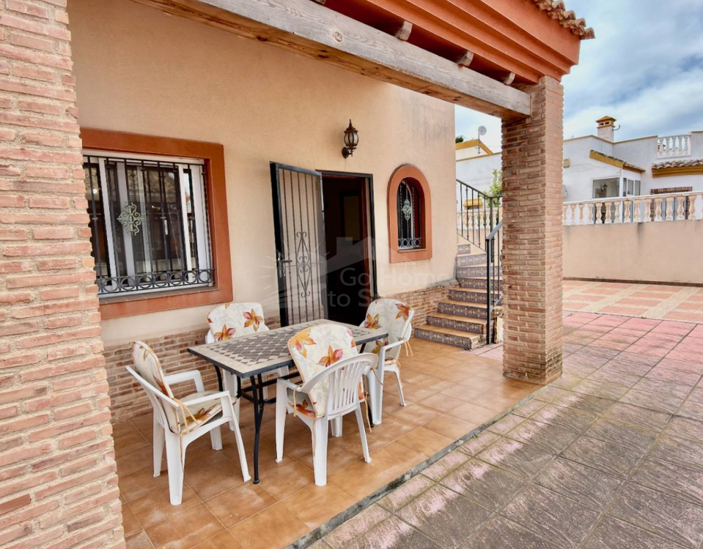 Turnkey 2-Bedroom Villa with Private Solarium Set in the desirable area of El Raso this beautifully presented villa offers a perfect balance of comfort, style, and low-maintenance Mediterranean living. Immaculately maintained and sold fully furnished, the property is ready to move straight into—ideal as a holiday home, permanent residence, or high-demand rental investment. Inside, you’ll find two well-proportioned bedrooms, a modern bathroom, and a bright open-plan living and dining space. A separate fully fitted kitchen with ample storage and a dedicated utility room adds practicality, while air conditioning and ceiling fans ensure year-round comfort. Outdoor Living The villa truly excels outdoors, set on a generous corner plot offering ample space to add a private swimming pool, enhancing both lifestyle and value. A private rooftop solarium provides the perfect setting for sunbathing, entertaining, or simply relaxing in peaceful surroundings. Residents also benefit from access to a well-maintained communal pool, ideal for cooling off during the warmer months. Key Features 2 Bedrooms | 1 BathroomFully furnished – turnkey conditionBright open-plan living spaceSeparate fully fitted kitchen + utility roomAir conditioning & ceiling fansPrivate garden & rooftop solariumAccess to communal poolOff-road parking for 2 vehicles Prime Location Ideally positioned close to all amenities, golf courses, and the coastline: Beach: 10 minutesAmenities: 10 minutesGolf: 15 minutesAirport: 30 minutes