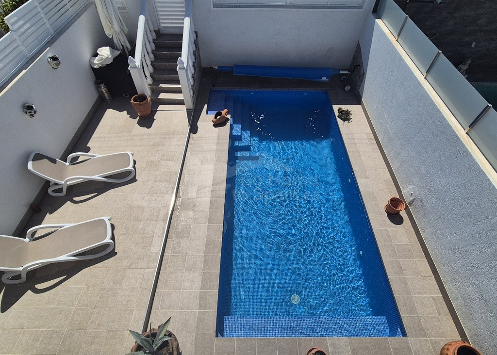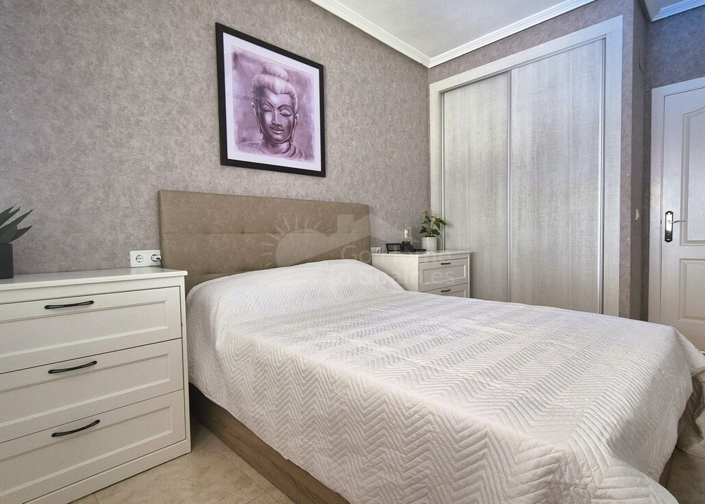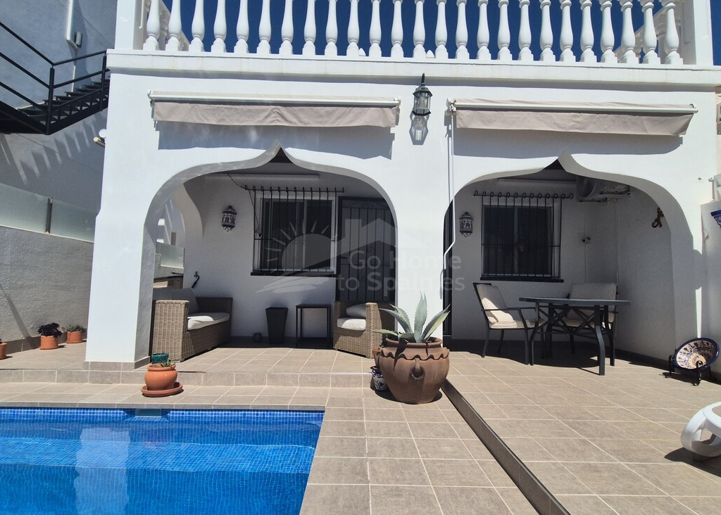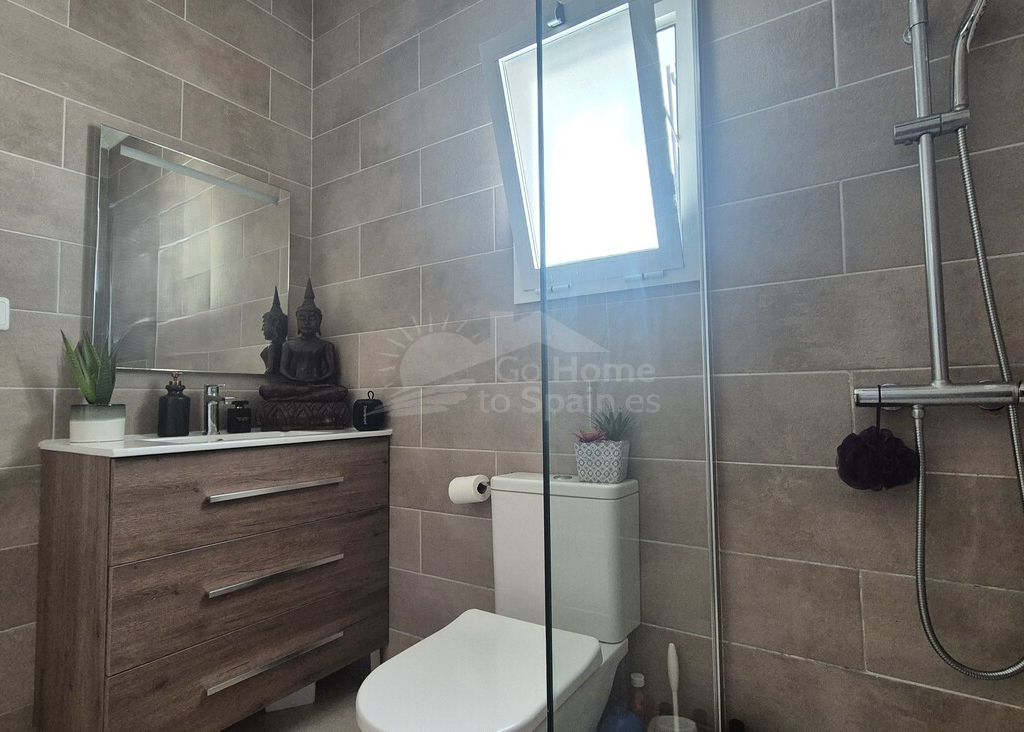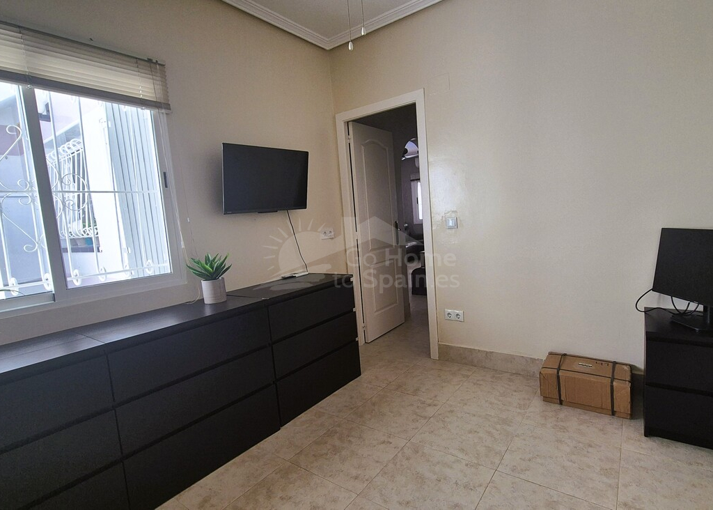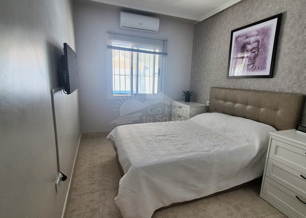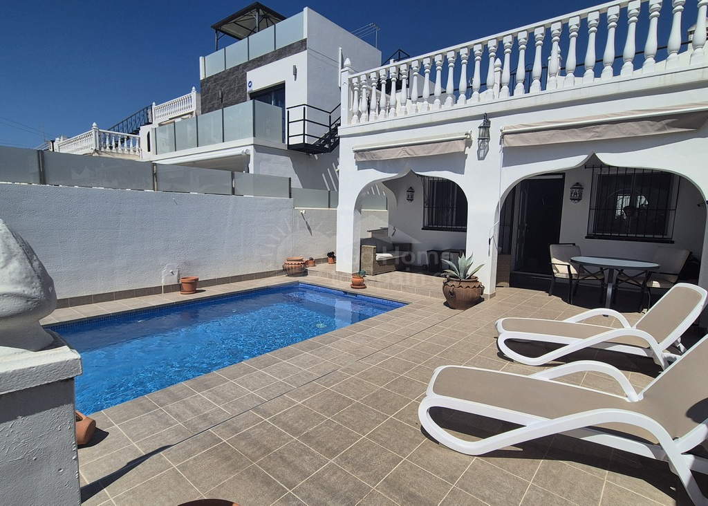 We present you with this impressive 2 bedroom, single-story bungalow, with roof solarium and impressive heated saltwater pool, complemented by solar panels to enhance energy efficiency. Conveniently situated, it is a mere 8 minutes from the bustling Villamartin - 10 minutes to the La Zenia Boulevard area, Beaches, Golf courses, and the popular Zoco Market. The owner has renovated the property over the last two years. The renovation includes:New Metal Fencing to the boundary of the propertyNewly built - HEATED and Covered - SALT WATER Swimming Pool to ensure all year round swimming. The pool has steps entery and a seating area at one end, the full width of of the pool.Newly tiled patio/terraceFreshly painted exterior to the house and boundary wallsNew Gas BoilerSOLAR PANELS – with Solar wallet to supplier and giving free ElectricityRefurbished BathroomRefurbished KitchenInternal walls Plastered to smooth finishNew fitted wardrobe to the main bedroomNew Air-conditioning units running also from wifi if required, allowing you to remotely start on a timer or immediately, from anywhere. Ideal if out and wanting a cool home to return to.New Remote controlled Ceiling FansImagine yourself sitting in the garden of this Beautiful South Facing property, being able to swim, all year round in the Newly Built, Heated Salt water Swimming pool or just simply relaxing on the Terrace.Entering the property, you have a bright spacious lounge and semi open plan to the kitchen which leads onto a utility area, which houses the Washing machine, Dishwasher & Fridge Freezer.The rear stairs lead to the Solarium which currently is home to the Solar Panels. (The Solarium has views to the Salt lakes and offers the potential to be extended to add further bedrooms and bathrooms)There are 2 Large Bright Bedrooms and a refurbished Bathroom.To the side of the property is an external Brick Built Storage area.This Semi Detached property is located in San Miguel De Salinas, which is a multi National community. It is just a 10 minute walk from the Village of San Miguel, which offers Supermarkets, Bars, Restaurants, Shops, Schools and more. There is also a Bar, just at the end of the road of which the Villa is situated.There is a bus service just a 2 minute walk from the house, taking you into La Zenia and also Torrevija (links to the airport). Also a good local Taxi service.Villamartin - GOLF - La Zenia Boulevard and local Beaches & Zoco Market are just a 8- 10 minute drive from the property.Padal Courts, Tennis Courts, Petanque, 5 Min walk from the property. The Village has Community Football pitches & large Community Swimming pool To arrange a Viewing contact us now, before it´s gone! Check out our Property Walk Through Video, get a real feel for this Beautiful Home!
