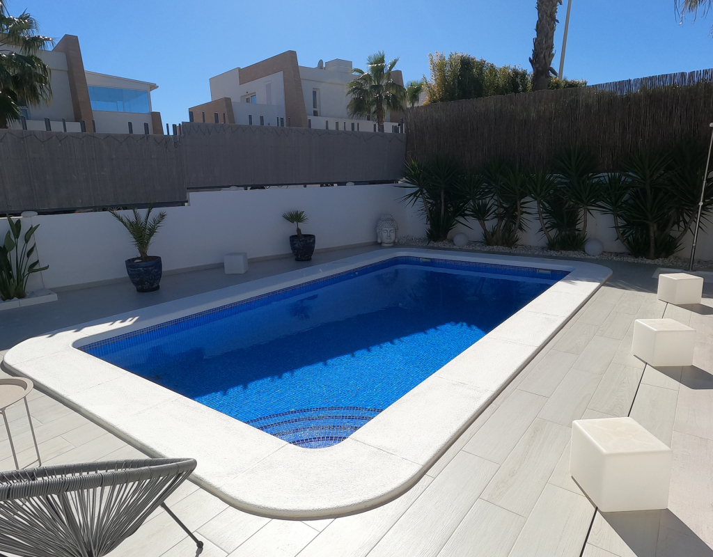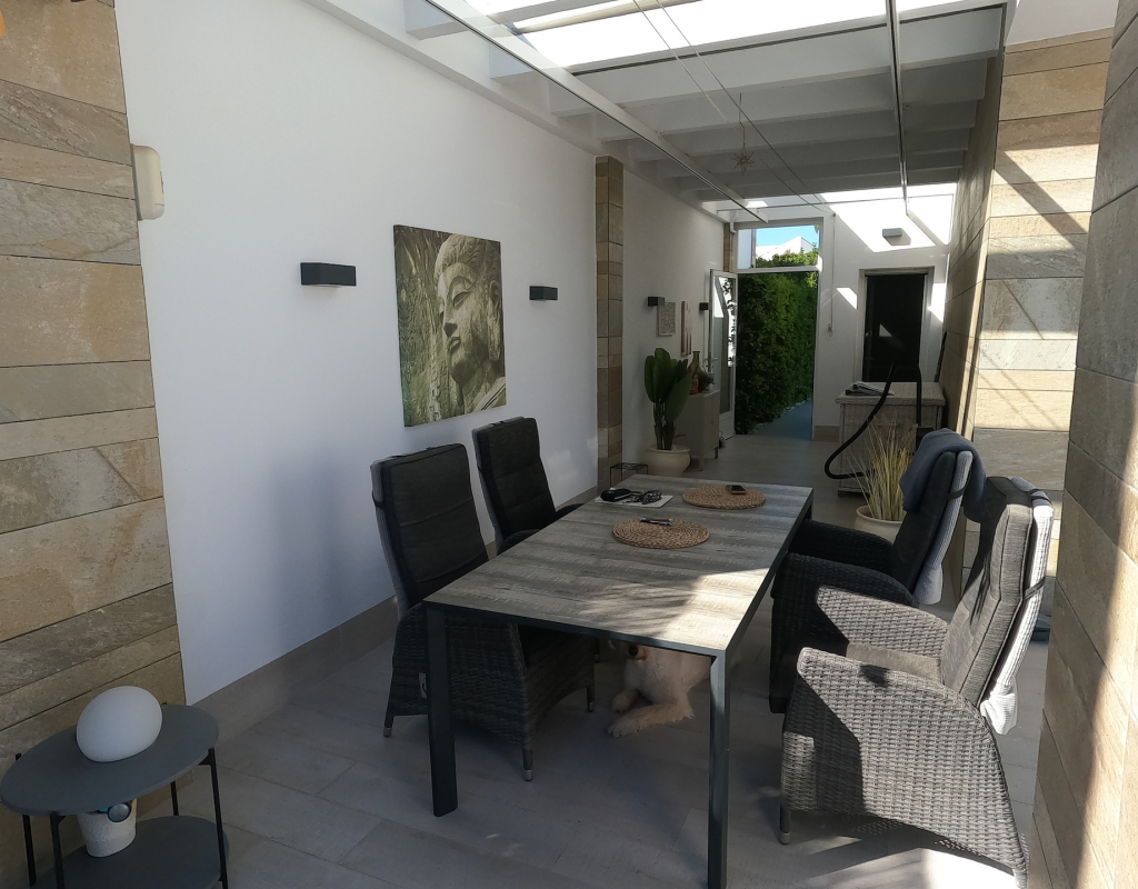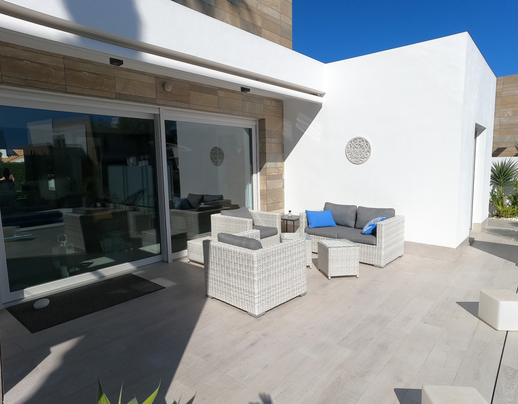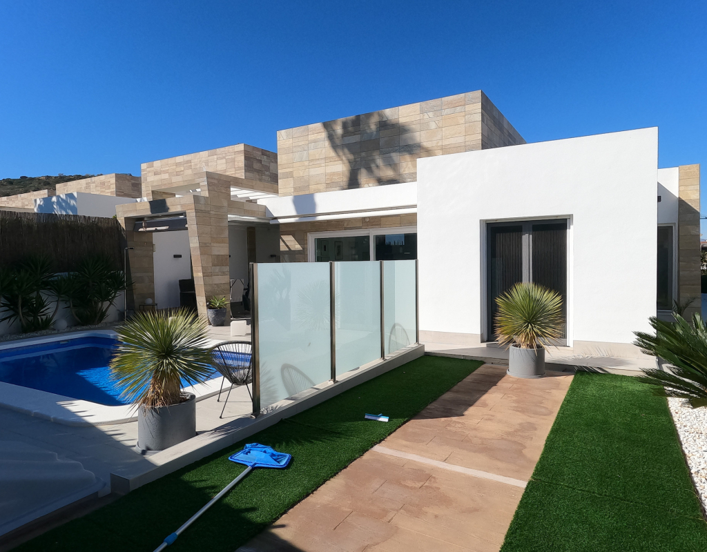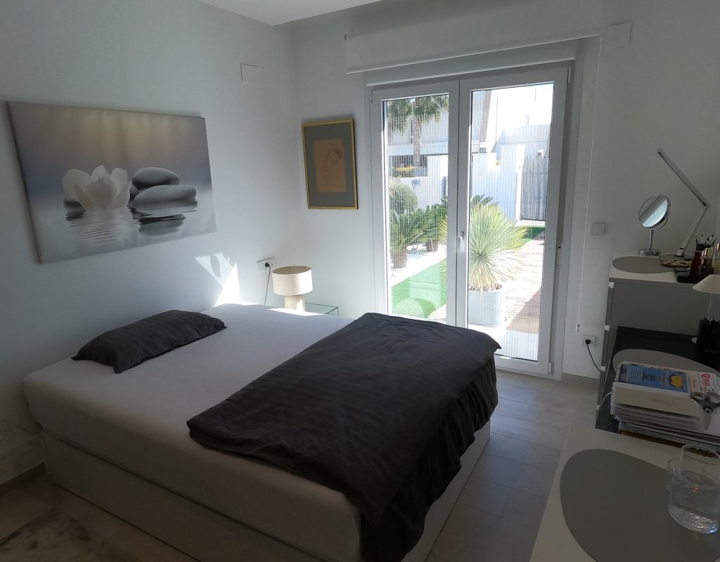 For sale is a spacious detached, south facing villa located in the beautiful area of La Finca Golf, Algorfa, offering a comfortable and private lifestyle. This resale property provides generous internal space, featuring three well-sized bedrooms and two modern bathrooms. The villa is part furnished, and presented in immaculate condition. The villa's south-facing orientation ensures plenty of natural sunlight throughout the day, creating a bright and welcoming atmosphere in every room. Large windows help to capture this light and add to the open feel of the internal space. Extras include: pool, air conditioning, pellet burner, solar panels, storage units, BBQ Algorfa is well known for its tranquil setting, surrounded by lush countryside and orange groves. It offers a peaceful environment while still being conveniently close to various local amenities, including shops, cafes, and leisure facilities. The area is ideal for those who appreciate a relaxed pace of life, with opportunities for outdoor activities such as cycling and golf. The Golf course of La Finca Golf is on the doorstep and within walking distance to the property! This is a fantastic opportunity to own a detached villa in a sought-after location. For more information or to arrange a viewing, please contact OrangeCasas.
