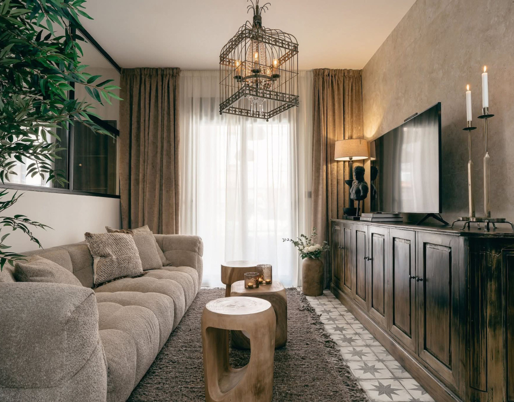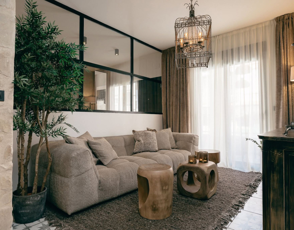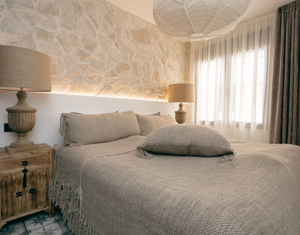 Now you have the opportunity to buy a completely unique apartment just a stone's throw from the promenade and Playa Del Cura. This is an apartment for those who want the EXTRA in their accommodation. Those who are looking for comfort and a luxurious feel. Here, the choice of materials, furnishings and decoration is exclusively selected by the interior designers. Here you have your own private entrance and your own parking space in the garage under the apartment. At the private entrance to the apartment there is a luxurious and leafy terrace. Here there is space to eat, relax and barbecue. Here you can enjoy long and warm evenings and look down towards the sea. A wonderful welcome awaits you when you enter the apartment. A hall full of storage. The view from the hall extends all the way to the kitchen via the large industrial glass wall. The apartment offers 2 tasteful and spacious bedrooms. Both have plenty of storage and you enter the bedrooms via the sliding doors that are 250 cm high. A fantastic illuminated stone wall provides harmony in one of the bedrooms. The large social kitchen together with the living room is the heart of the apartment. Here you have the opportunity for wonderful togetherness with family and friends. The kitchen is fully equipped with double refrigerators and freezers. On both sides of the kitchen you have a sink and the stove has a built-in fan. Of course, this kitchen has a wine cooler. The kitchen is separated from the patio by elegant industrial-style sliding doors. On warm summer evenings you open it up and extend the dining room out. The living room with an exclusive sofa, wool rug and a vintage TV stand has access to the front terrace. Between the kitchen and the living room there is a sofa and armchair. There you can have your morning coffee or drink before dinner. Two bathrooms with green emerald-like tiles complementing stone sinks and exclusive taps. The largest bathroom has double sinks. The apartment has built-in air conditioning for wonderful comfort in all rooms. Comfort is enhanced by the carefully selected lighting where most light points can be dimmed. EVERYTHING, just everything in the apartment is new. Water, Electricity, Doors & windows, Tiles & floor tiles, Bathroom furniture and bathroom porcelain, Kitchen and its appliances. Air conditioning and of course the exclusive furniture. You are warmly welcome to book your viewing!